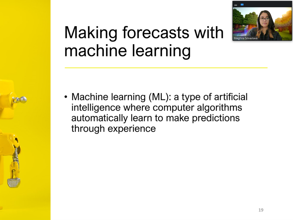 ♦ Meghna presents a talk for the STEM Outreach Collective to 30 Intro to Engineering students in 12th grade at East Palo Alto Academy High School in Palo Alto, CA.